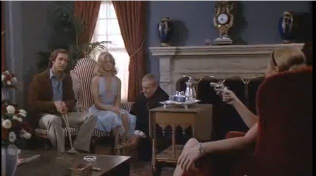 In Foul Play, Chevy plays a cop named Tony and Goldie plays a librarian named Gloria. They are pitted against a radical group who wants to call attention to their fairly rational quest to get the government to tax the churches by assassinating the pope with the help of a man with a scar, and albino,  a dwarf who is not really a dwarf, and a Turk who may or may not be Turkish.
