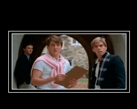 I was worried about watching it; I’ve been disappointed in my adulthood many times by movies I found hilarious in the 80s. (Bachelor Party, I’m looking at you.) The most disappointing thing about re-watching “Making the Grade” was that they left half of it on THIS TV’s floor: most notably, the scene in which Rand (the playboy’s sidekick) teaches street kid Eddie how to dress preppy. I was appalled: the entire point of the movie is to teach us kids how to dress preppy, especially since we didn’t get The Preppy Handbook way down in Greene County. And they cut THIS scene?