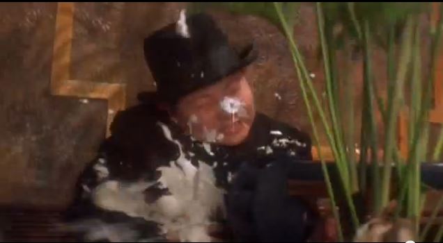 Maybe Parker is trying to say something about sensationalized violence in movies by using whip cream instead of bullets.